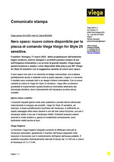 Nero opaco: nuovo colore disponibile per la placca di comando Viega Visign for Style 25 sensitive